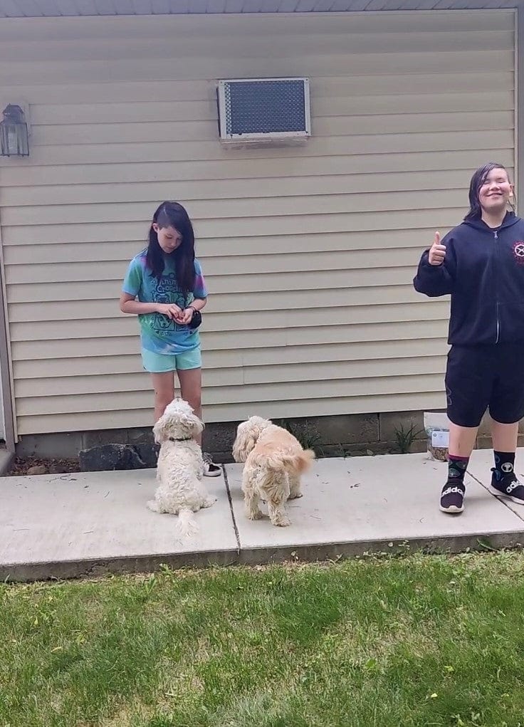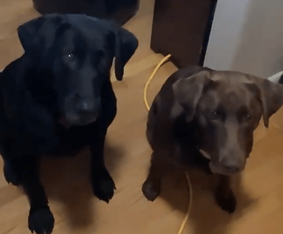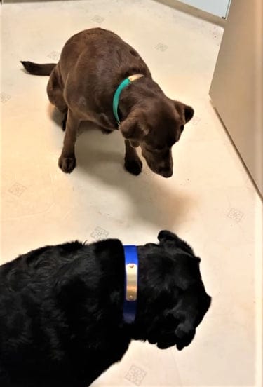 Moxie and LucySee their trickJake's two Labs, Moxie and Lucy are required to bless their treats first.